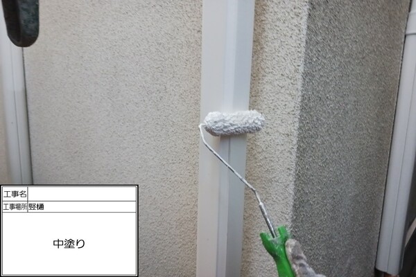 中塗りでは塗膜の厚みを確保し、防水性・耐候性のベースをつくります。