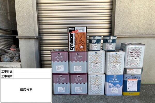 今回の外壁には、SK化研の弾性プレミアムシリコンを採用しました。伸縮性のある塗膜が建物の動きに追従し、ひび割れや雨水の侵入をしっかり防いでくれる塗料です。