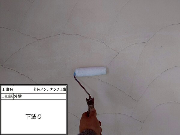 この工程がしっかり行われていないと、塗膜の剥がれや早期劣化につながるため、とても重要です。外壁全体にムラなく塗布することで、次の工程の仕上がりが安定します。