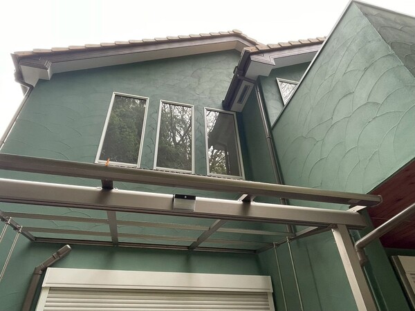 今回の外壁塗装では、落ち着きのあるグリーン系のカラーで仕上げることで、やわらかさと上品さを感じられる外観になりました。