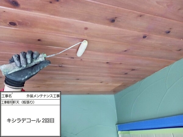 軒天の木部には、キシラデコールを使用して塗装を行いました。