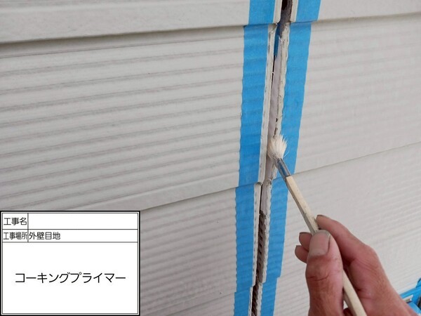 専用プライマーを刷毛で丁寧に塗布し、シーリング材がしっかりと密着するよう下地処理を行いました。